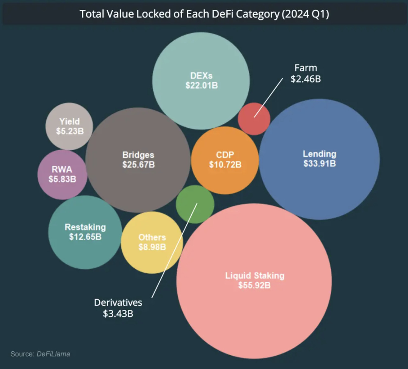 La capitalisation boursière de la DeFi a bondi de 78 milliards de dollars à 122 milliards de dollars au premier trimestre. Cela représente une augmentation de +49,1 % par rapport au quatrième trimestre 2023.